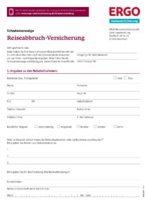 Formular zur Schadensmeldung der Reiserücktrittsversicherung/Stornokostenversicherung bei Reiserücktritt