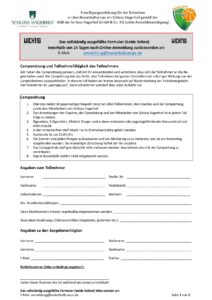 Einwilligungserklärung für die Teilnahme an den Basketballcamps am Schloss Hagerhof gemäß der Allgemeinen Geschäftsbedingungen der Schloss Hagerhof GmbH & Co. KG (siehe Anmeldebestätigung).
